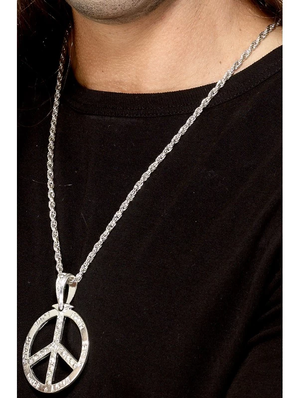 Deze zilveren ’60s Peace Sign Hippie Medallion mag natuurlijk niet ontbreken bij Jouw Hippielook.