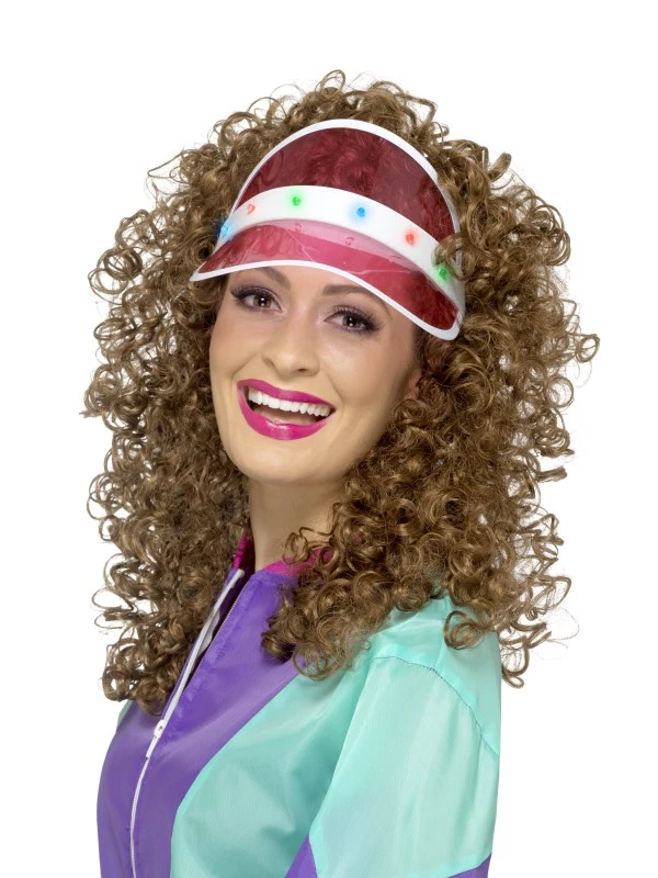 80s Roze Light Up Zonneklep met LED verlichting, leuk voor een eighties party.