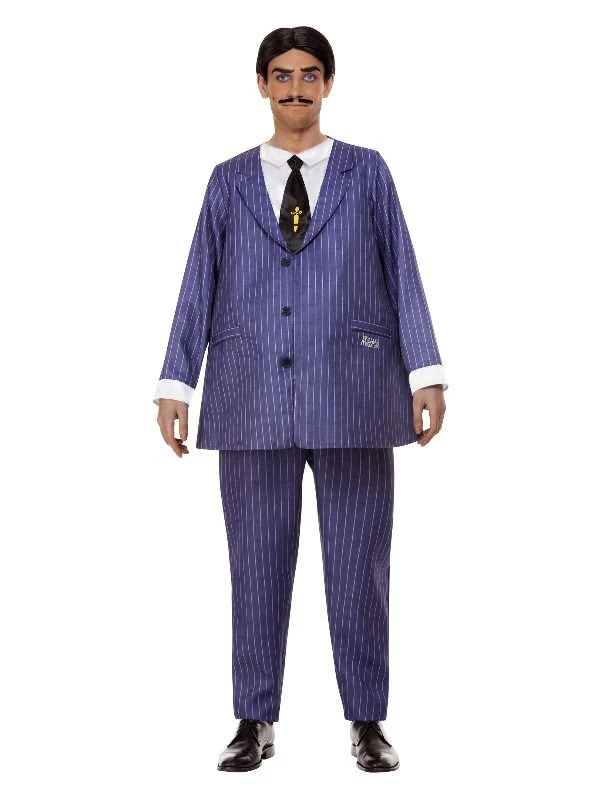 Wie kent ze nou niet de Addams Family, Verkleed je al Gomez Addams in dit geweldige paarse kostuum bestaande uit de top, broek, snor en pruik. Je bent met dit kostuum in één klap klaar voor Carnaval of Themafeestje, Bekijk hier onze gehele collectie van de Addams Family.