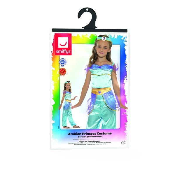 Arabian Princess kostuum, bestaande uit de broek met top en haarband. Leuk voor Carnaval of een themafeestje.