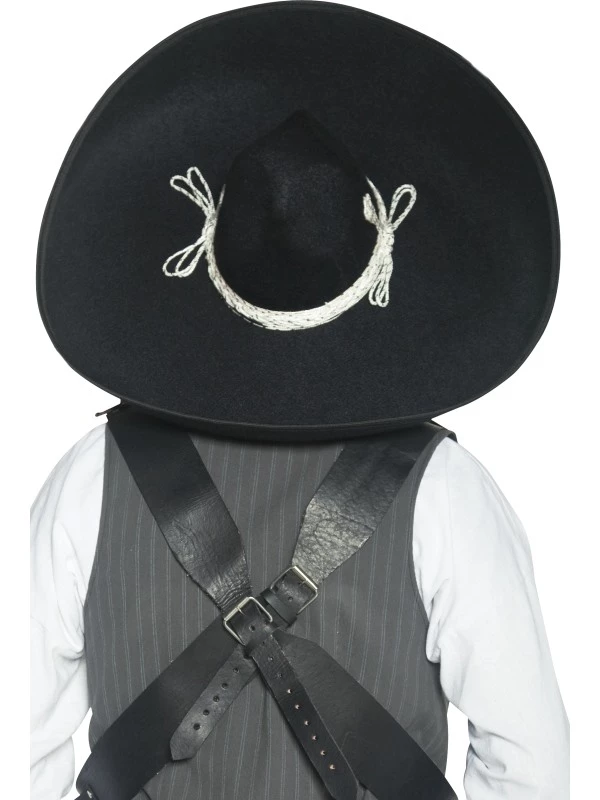 Grote Zwarte Authentic Mexicaanse Bandieten Sombrero. One size fits most. Grote hoed maar blijft goed zitten door touwtje. We verkopen nog meer hoeden en accessoires.