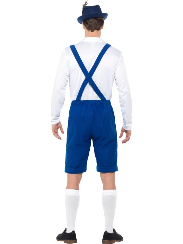 Draag deze geweldige blauwe Bavarian Kostuum met wit Shirt & Lederhosen tijdens het Oktoberfest of welk ander Tirolerfeestje dan ook.