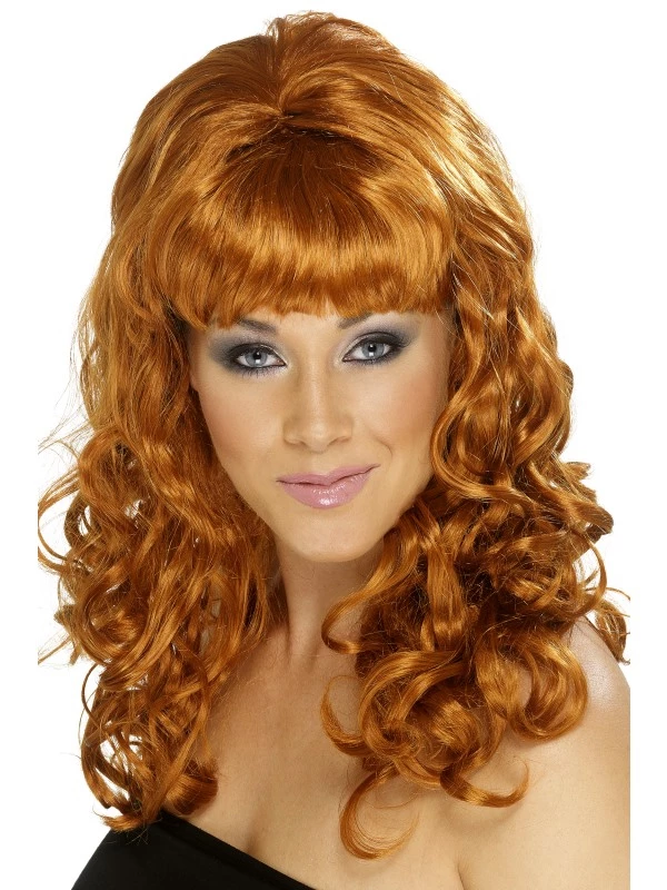 Kastanjebruine Beehive Beauty Pruik met krullen.