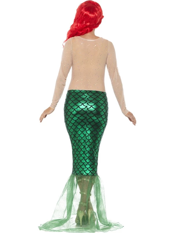 Prachtig Deluxe Sexy Zeemeerminnen Kostuum, bestaande uit de jurk met paars bovenstukje en groen onderstuk met lovertjes en haarclip. Maak je look compleet met een mooie pruik.