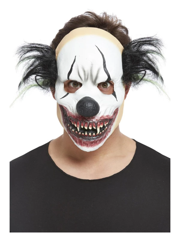 Jaag iedereen de stuipen op het lijf met dit Evil Clown Masker van Latex, met haar. Perfect voor een Halloweenparty.