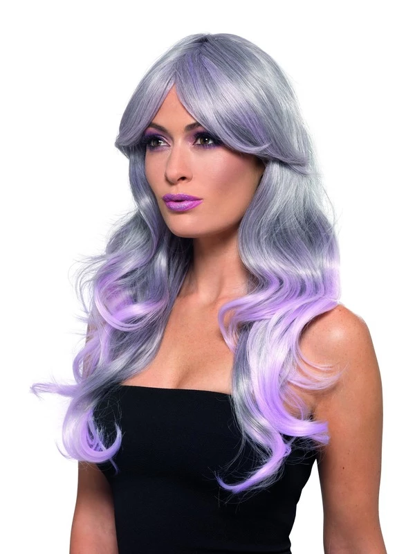 Fashion Ombre Pruik, Wavy, Long, Grey & Pastel Pink, Heat Resistant/ Styleable.