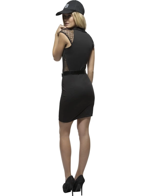 Federal Bureau of Investigation of Fabulous Body Inside? Met deze sexy jurk kan het beide zijn. Sexy zwarte jurk met FBI en riem. U krijgt er ook een passende FBI pet bij. Maak het af met onze accessoires zoals handboeien, kousen, nepwimpers. Leuk voor een vrijgezellenfeest of voor Carnaval.