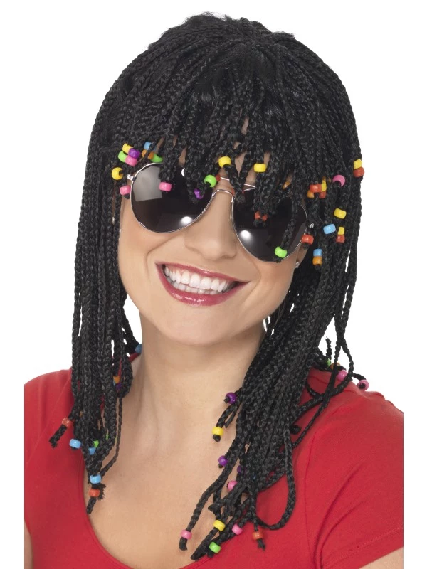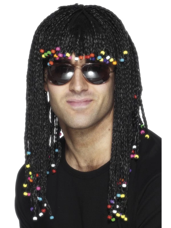 Maak jouw Rasta look af met deze Zwart Gevlochten Pruik met Kralen.