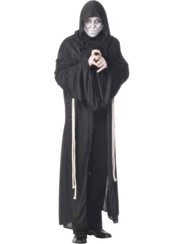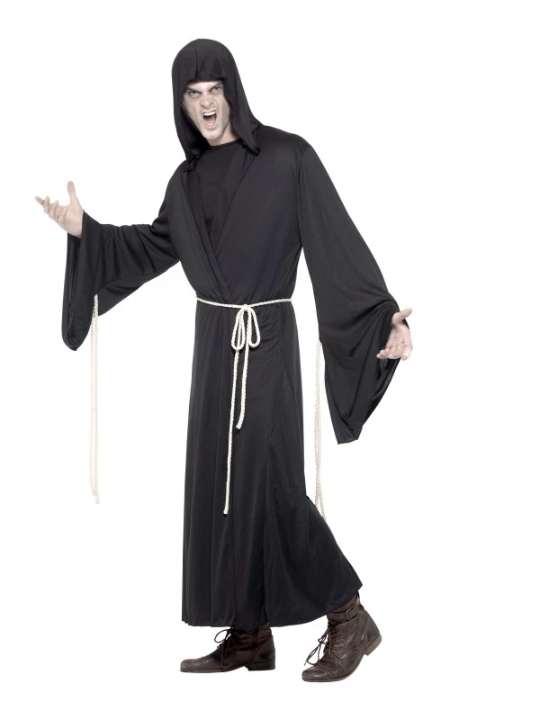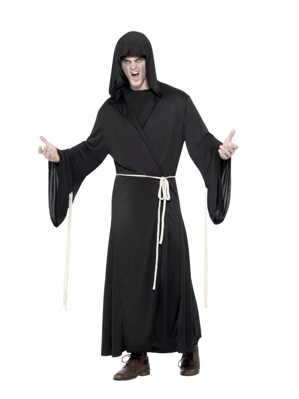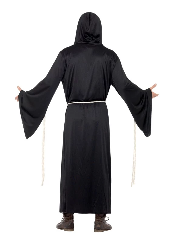 Grim Reaper Magere Hein Halloween Kostuum. Inbegrepen is het lange zwarte gewaad en de riem (touw). Het masker verkopen we los met korting.