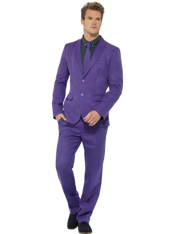 Hip Paars Herenpak 3-Delig. Inbegrepen is de paarse broek, het colbert jasje en de stropdas. Geen saaie pakken meer naar je feestjes of je werk? Met onze nieuwe hippe geprinte herenpakken valt u gegarandeerd op. De pakken vallen redelijk groot uit, bij twijfel adviseren wij de kleinere maat te kiezen.