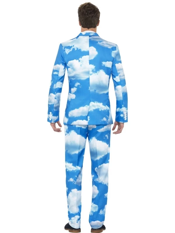 Hip Sky High Wolken Print Herenpak 3-Delig. Inbegrepen is de all-over print broek, het colbert jasje en de stropdas. Geen saaie pakken meer naar je feestjes of je werk? Met onze nieuwe hippe geprinte herenpakken valt u gegarandeerd op. De pakken vallen redelijk groot uit, bij twijfel adviseren wij de kleinere maat te kiezen.