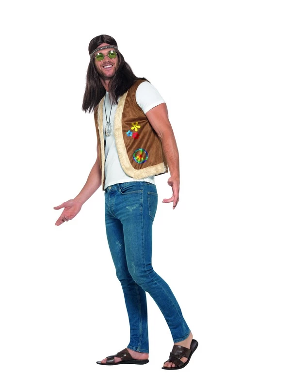 Terug in de tijd van de Hippies met dit geweldige Hippie Giletje met bontrandje en opdruk, leuk te combineren met een van onze jaren 70 broeken. Om de look helemaal compleet te maken verkopen wij ook bijpassende pruiken, zonnebrillen in diverse kleuren, snorren, sieraden en nog veel meer.