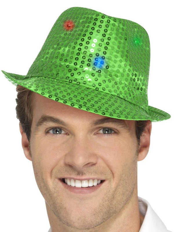 Groene Light Up Sequin Trilby Hoed met Multi-Function LED Lights. Ook verkrijgbaar in andere kleuren.