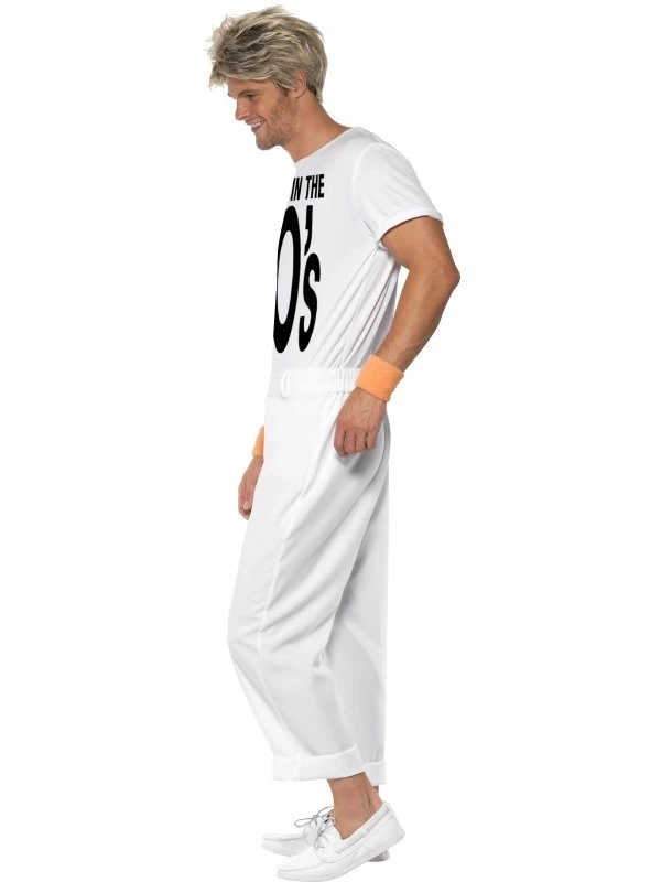 Made in 80’S Heren Verkleedkleding. Inbegrepen is de witte broek en het witte shirt met: Made in the 80’s. We verkopen de pruik los.