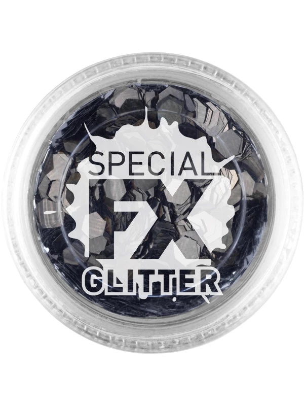 Met deze zwarte Make-Up Confettie Glitter maak je de mooiste creaties voor elke gelegenheid. Het geeft je look net een beetje dat extra glamour. Breng de confetti aan met onze Fixing Gel.