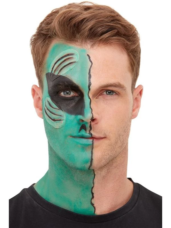 Maak jouw Aliën Look compleet met deze Make-Up FX, Alien Kit, bestaande uit Facepaints op waterbasis, zelfklevende latex littekens en applicators.