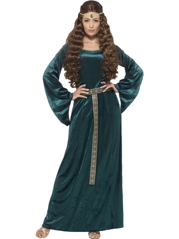 Terug naar de Middeleeuwen met deze prachtige groene Medieval Maid Kostuum, bestaande uit de jurk met haarband.