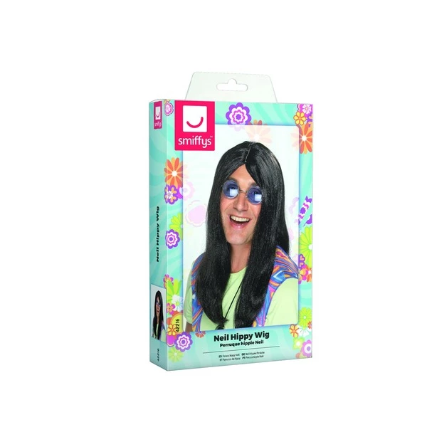 Maak jouw Hippielook compleet met deze geweldige zwarte Neil Hippie Pruik.