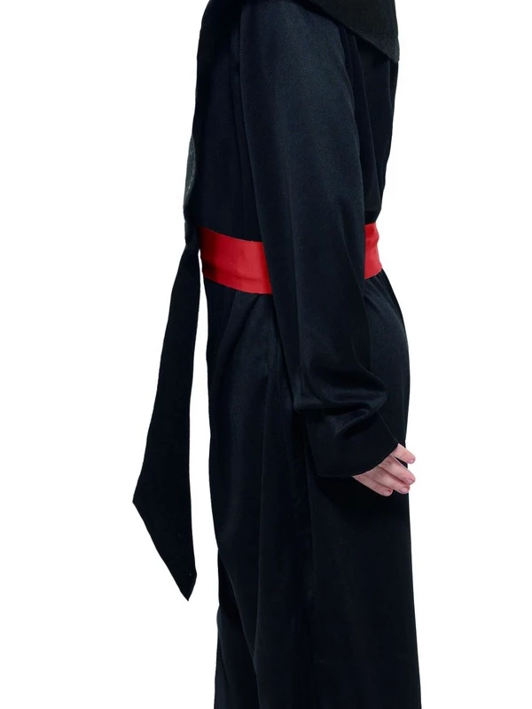 Ninja Kinder Verkleedkleding. Inbegrepen is de zwarte Jumpsuit met muts, riem en banden. Geweldige verkleedkleding voor jongens en meisjes.