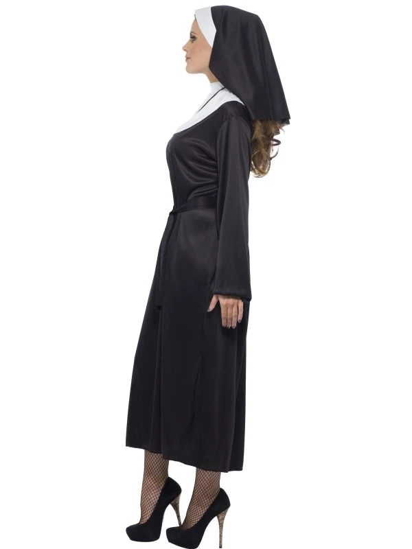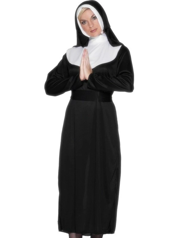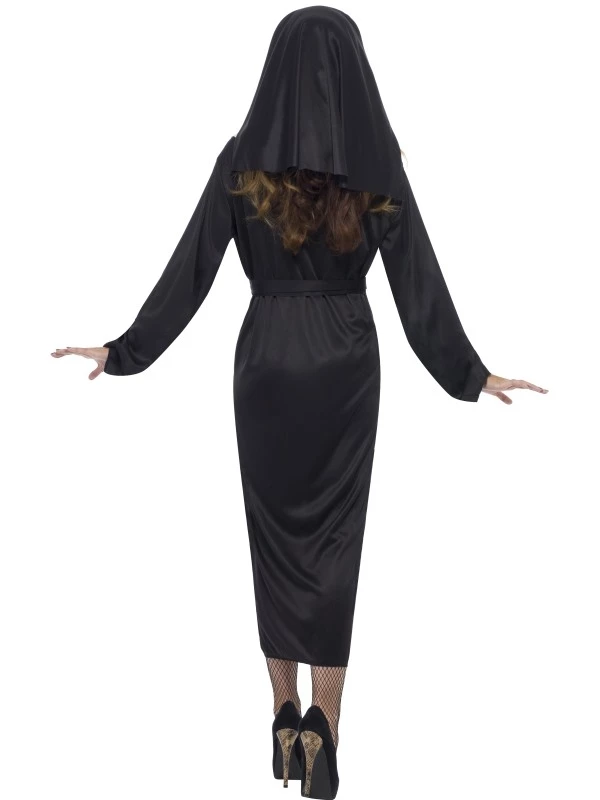 Dit Nonnen Kostuum is voorzien van een zwart nonnengewaad. Het hoofdkapje is bij het kostuum inbegrepen. Veel plezier toegewenst en hou je aan de regels van een non!