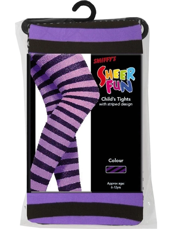 Paars – Zwart Gestreepte Panty voor Kinderen – de panty is niet doorzichtig en verkrijgbaar in diverse kleuren.