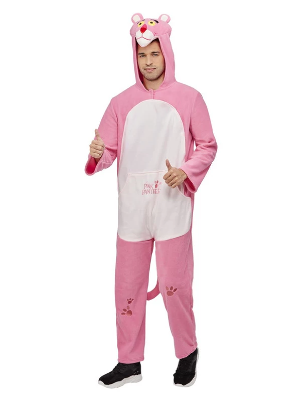 Pink Panther Kostuum, bestaande uit een onesie met karakter kap. Perfect voor Carnaval of vrijgezellenfeest.