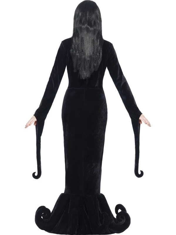 Prachtig Landhuis Hertogin Halloween Kostuum in het zwart. Mooie lange jurk tot aan de grond voorzien van gedetailleerde uiteindes aan de mouwen en onderkant.