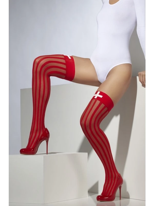 Rode Zuster Hold Up Kousen Met Wit Kruis