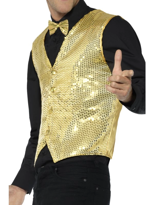 Gouden Sequin Gilet met lovertjes voor een echt Glamour effect. Leuk te combineren met de bijpassende gouden sequin hoed.