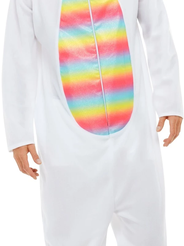 Hoe leuk is deze Unicorn Onesie, bestaande uit de witte hooded onesie met gekleurde buik gedeelte. leuk voor Carnaval, Vrijgezellenfeestje, Foute party of gewoon heerlijk voor thuis op de bank.