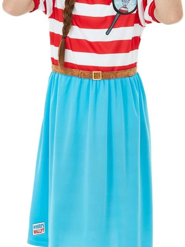 Where’s Wally? Wenda Deluxe Kostuum, bestaande uit het jurkje met 3D print, maillot, hoed en bril. Wij verkopen dit kostuum ook voor dames.