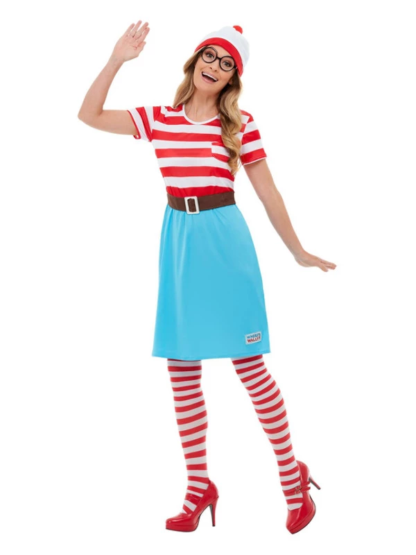 Where’s Wally? Wenda Kostuum, bestaande uit het jurkje, muts en bril. De bijpassende panty of kousen verkopen wij los.