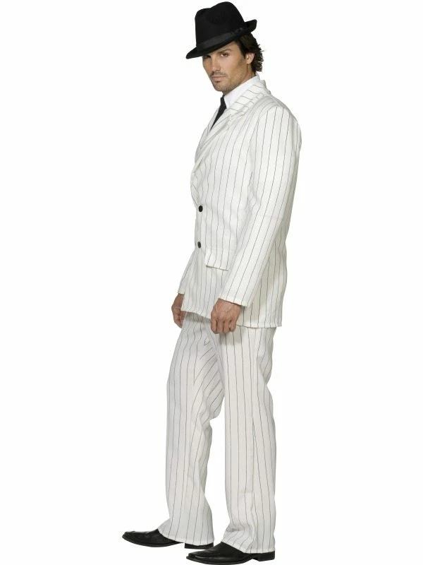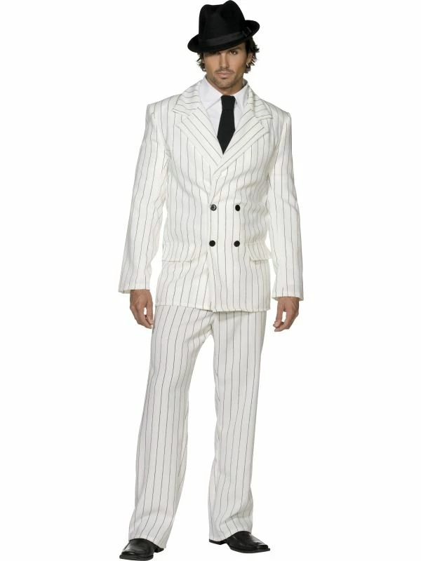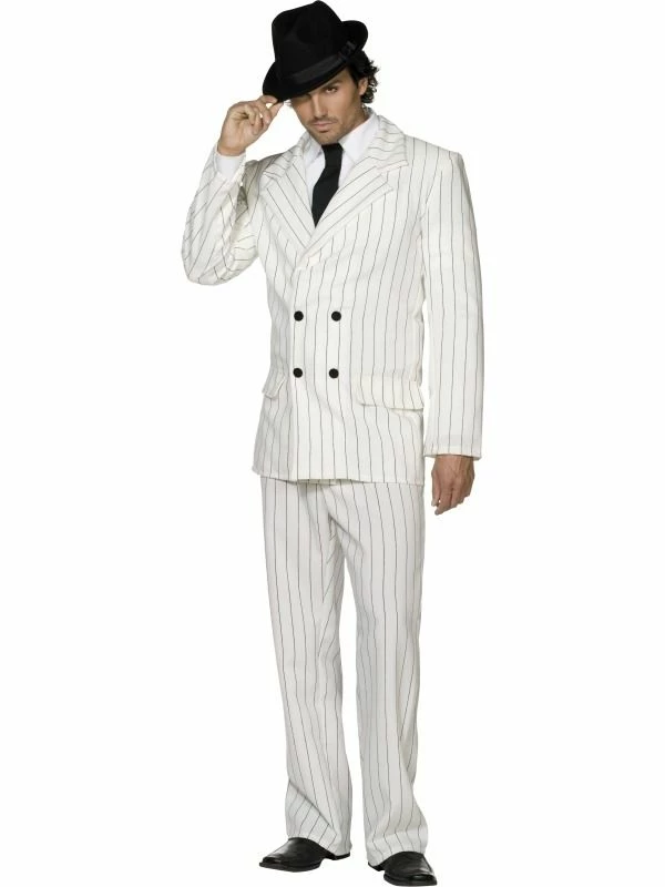 Wit Fever Gangster Heren Verkleedkleding. Inbegrepen is het mooie witte krijtstreep pak (jas en broek) en de stropdas. De hoed verkopen we los in onze webwinkel.