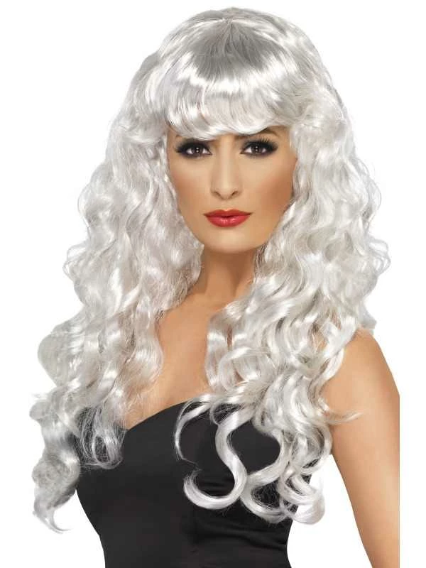Witte Siren Pruik: mooie volle lange pruik met mooie pony en krullen. Deze pruik is verkrijgbaar in diverse kleuren.