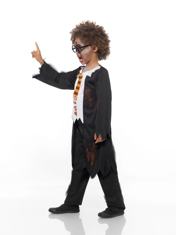 Zombie Student Kostuum, bestaande uit een zwart/wit pak met shirt en stropdas. Te gek voor Halloween.Wij verkopen ook schmink en nepbloed voor een echte Zombie look.